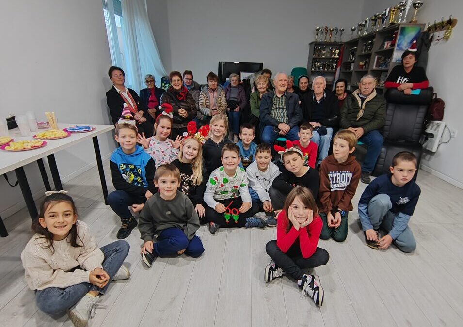 Učenici 2.c razreda danas su posjetili Udrugu umirovljenika grada Kastva. Druženje je započelo recitacijama, nastavilo se pjesmom, a završilo zasluženim čašćenjem. Učenici su, osim pjesme i recitacija, umirovljenicima poklonili i ručno ukrašene ukrase za božićna drvca. Svi su uživali, od najmlađih do najstarijih, što se najbolje može vidjeti po izrazima lica. Umirovljenici su bili odlična publika i učenike su nagradili velikim pljeskom, ali i kalendarom Udruge za sljedeću godinu. Posebno nas veseli što je dogovoren i nastavak suradnje, kako na božićnom druženju sljedeće godine, tako i kroz druge kreativne radionice. Svi smo se dobro zabavili i dokazali da pjesma i zabava ruše sve međugeneracijske razlike!
